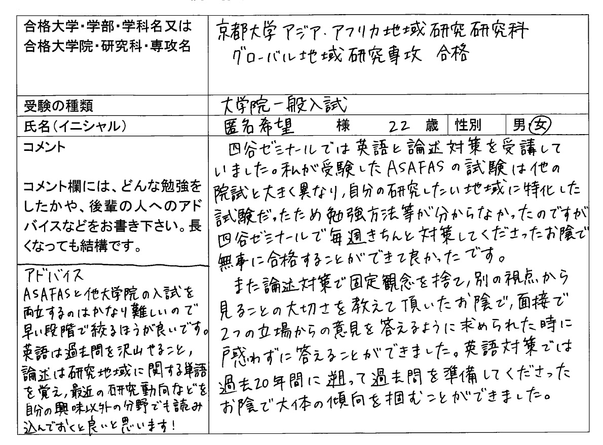 2026年度 京都大学大学院 アジアアフリカ地域研究科 合格
