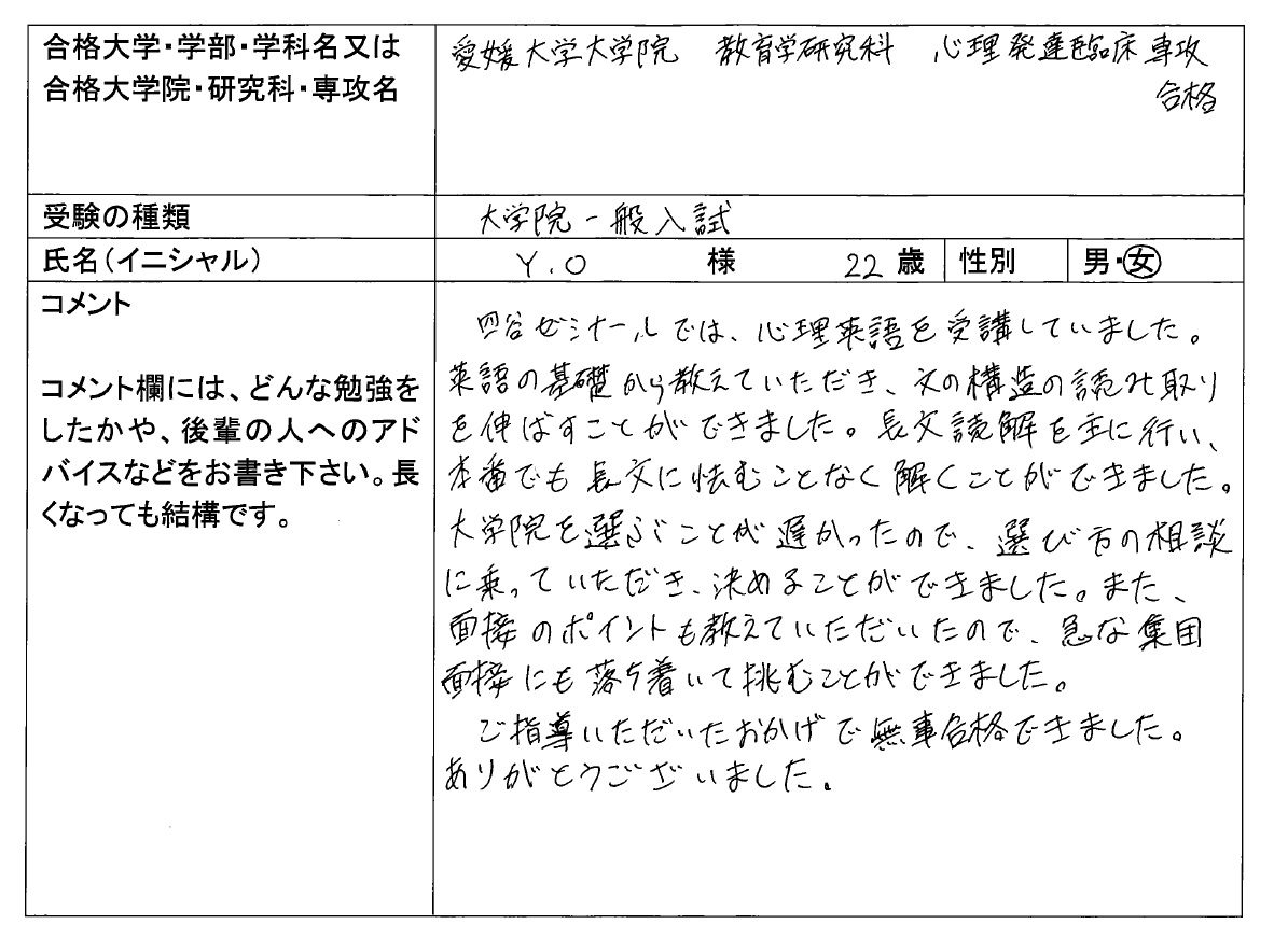 2026年度 愛媛大学大学院 教育学研究科 心理発達臨床 合格