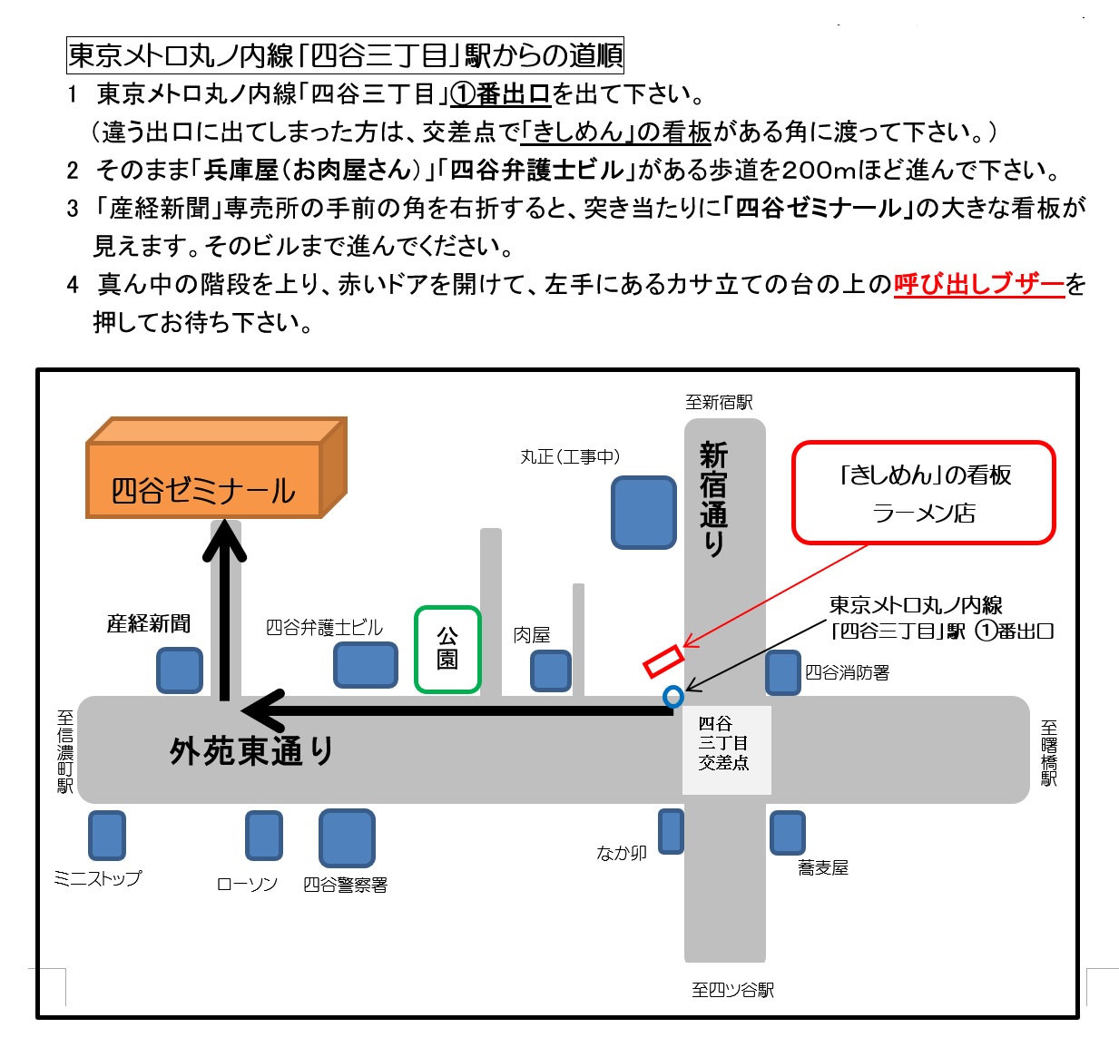丸の内線 四谷三丁目駅 ①番出口からの道順