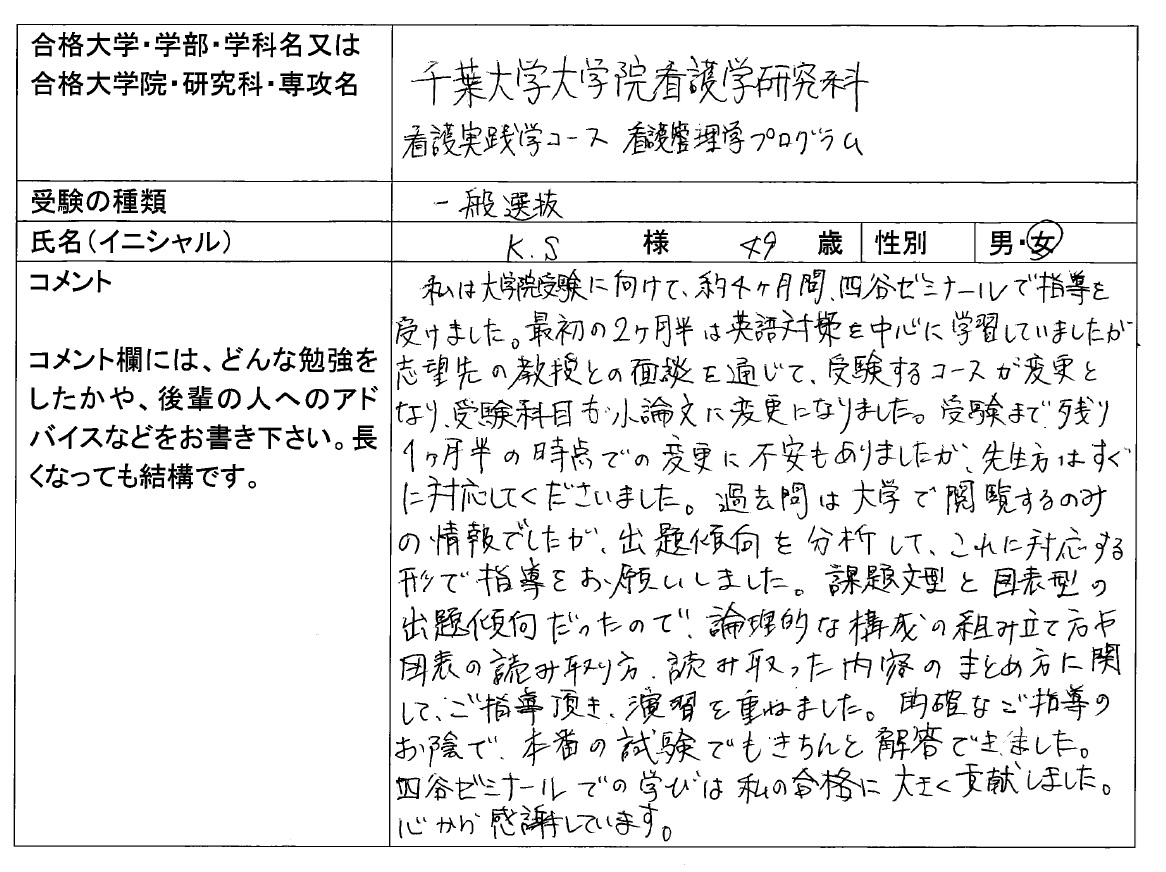 2026年度 千葉大学大学院 看護学研究科 看護実践学 合格