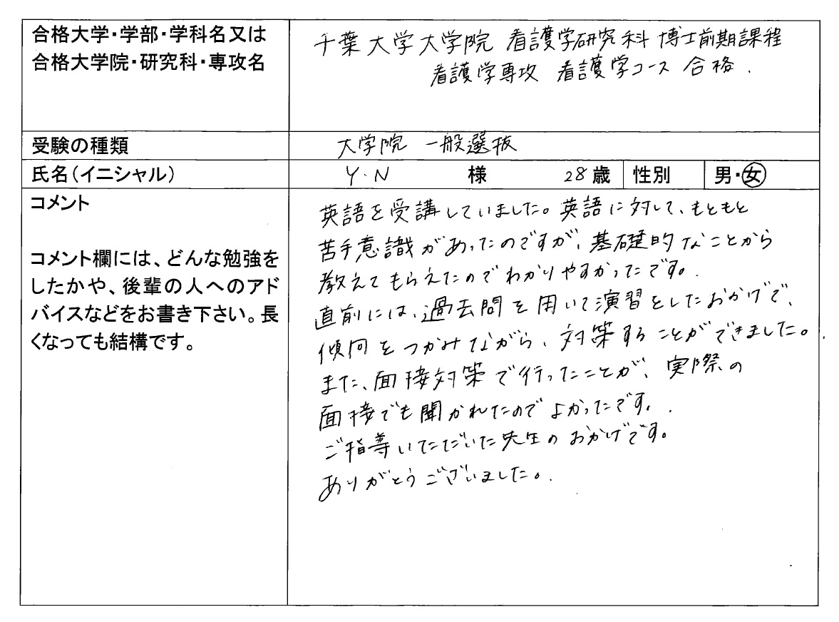 2026年度 千葉大学大学院 看護学研究科 看護実践学 合格