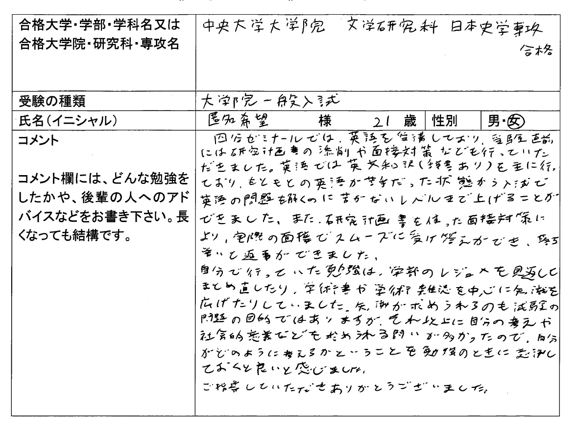 2026年度 中央大学大学院 文学研究科 日本史学専攻 合格