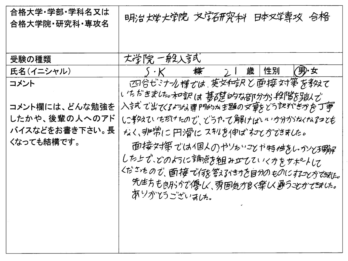 2026年度 明治大学大学院 文学研究科 日本史学専攻 合格